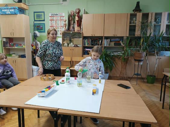 Dla dzieci były to bardzo ciekawe zajęcia. Mogły w swoich doświadczeniach zaobserwować wir powietrza tworzący lejkowaty kształt charakterystyczny dla tornada. W tym celu wykonały eksperyment z użyciem wody, oleju, barwnika, preparatu musującego.