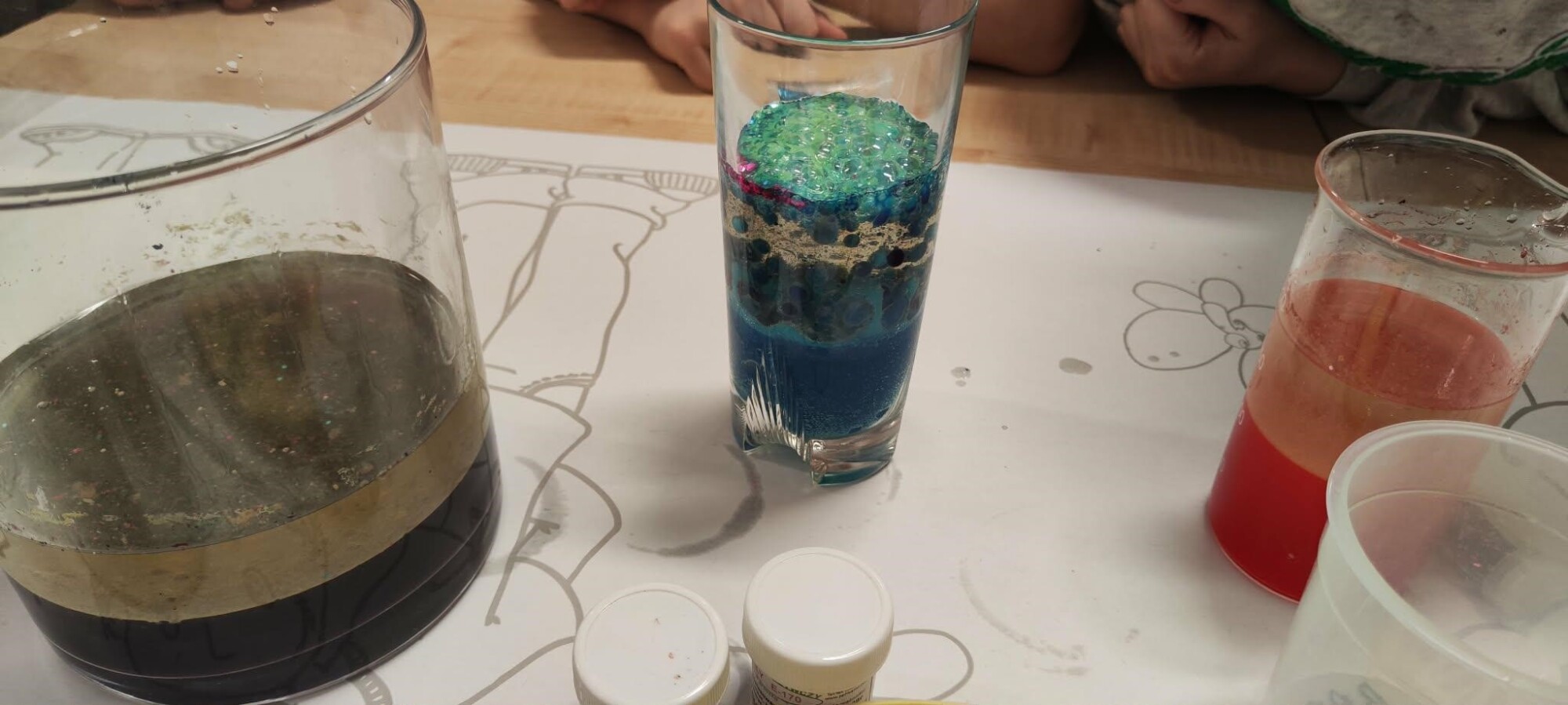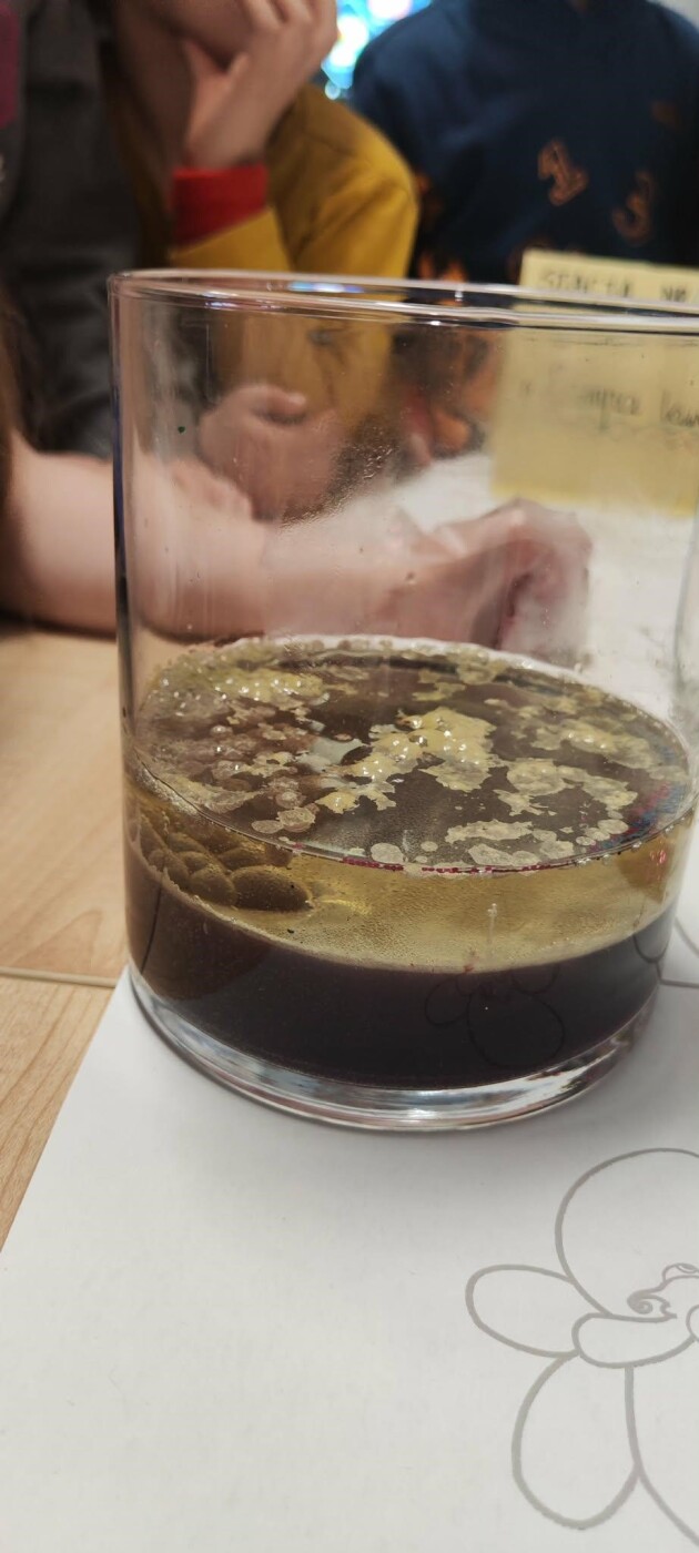 Uczniowie porównywali różne substancje i obserwowali reakcje chemiczne, ucząc się przy tym, jak naukowcy identyfikują nieznane materiały.