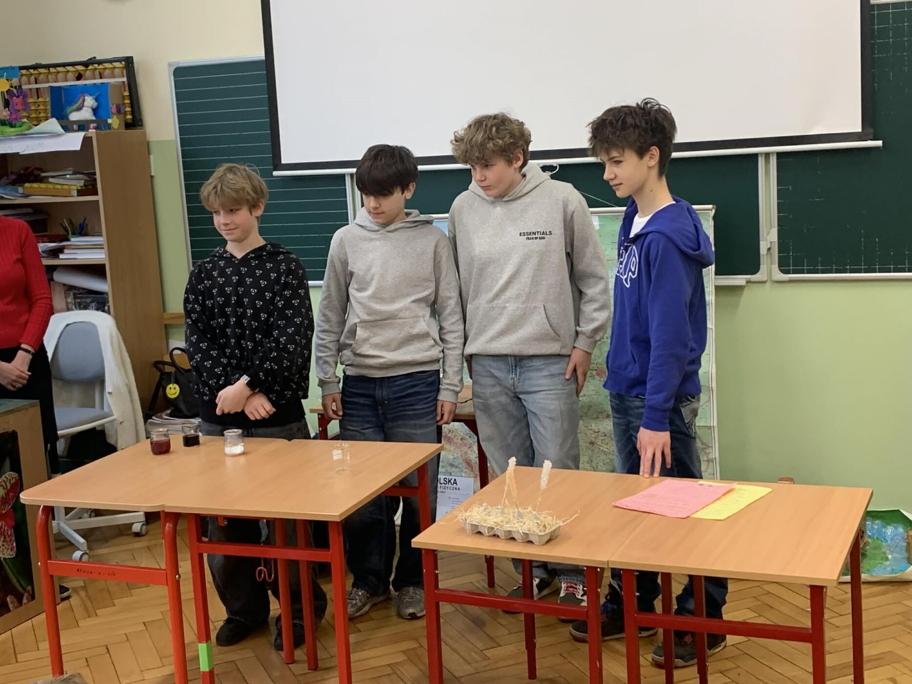 Dzięki ich zaangażowaniu młodsi uczniowie mogli uczestniczyć w ciekawych doświadczeniach, poznawać zjawiska przyrodnicze oraz odkrywać, jak fascynująca może być nauka. To była doskonała okazja do integracji, współpracy i wspólnego odkrywania świata!
