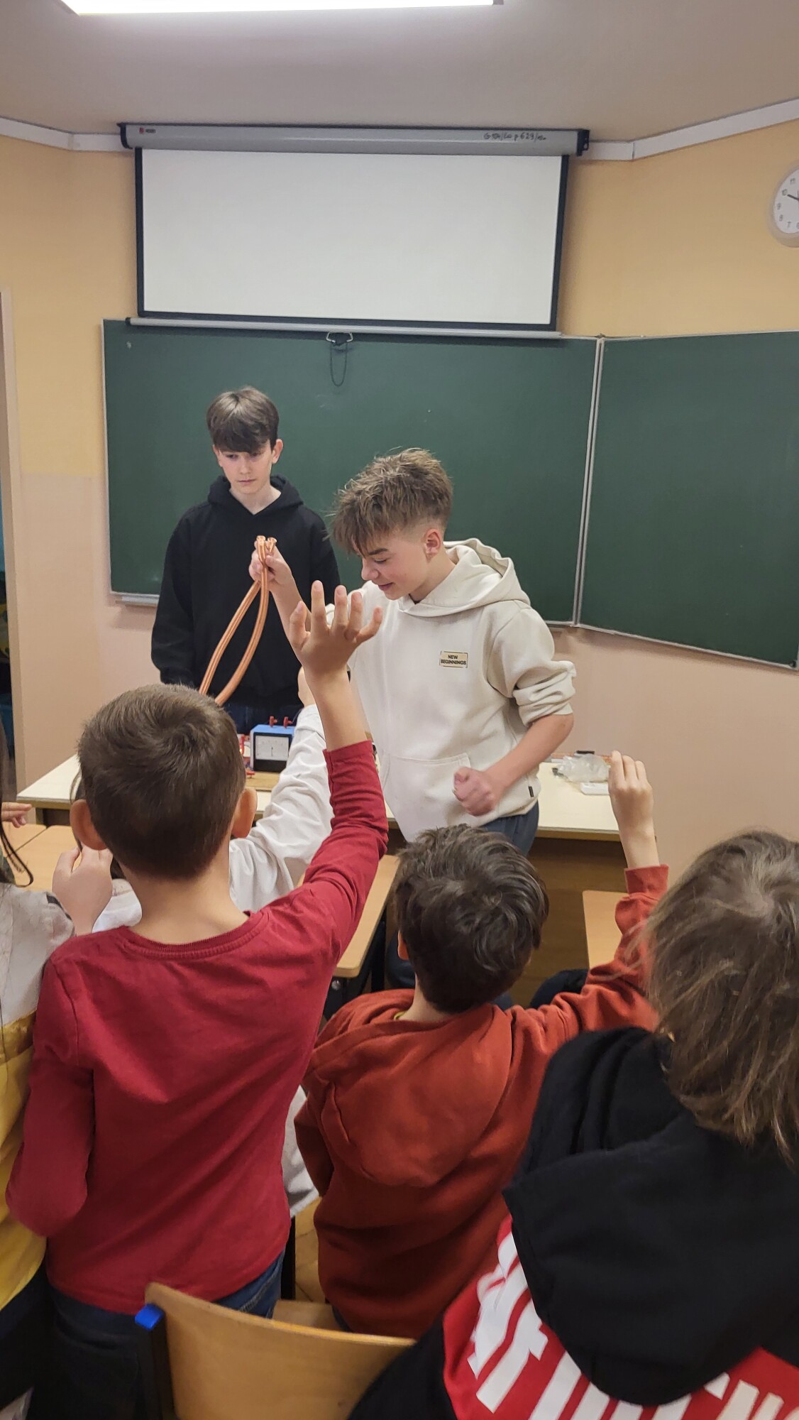 z radością informujemy, że kolejna część Festiwalu Nauki w naszej szkole już za nami! Tym razem to starsi uczniowie z klas 4–8 wcielili się w rolę młodych naukowców i przygotowali wyjątkowe eksperymenty dla swoich młodszych kolegów i koleżanek z klas 1–3.
