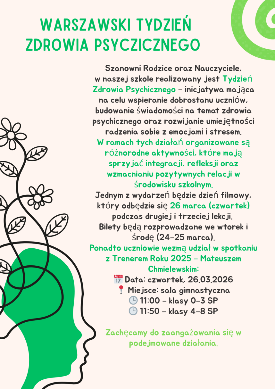 Był to czas pełen refleksji, inspiracji i wspólnego wzmacniania świadomości na temat znaczenia zdrowia psychicznego. Dziękujemy wszystkim za zaangażowanie!